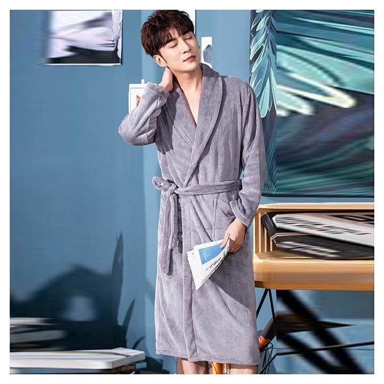 (着心地抜群バスローブ)上質のフランネル生地はふんわりの手触りがよく厚手で透ける心配なく、落ち感がよく何回洗っても型崩れ無し耐久性も最高、他のバスローブに比べて吸水性、速乾性に優れています。