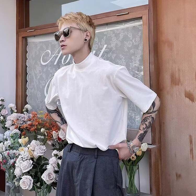 パープル シンプル おしゃれ ハイネック tシャツ ゆったり 韓国風 カットソー メンズ 原宿系 ストリート レイヤード 重ね着 無地 L 大きいサイズ M モックネック XL 2XL オーバーサイズ#lj8478 | オキナ商店