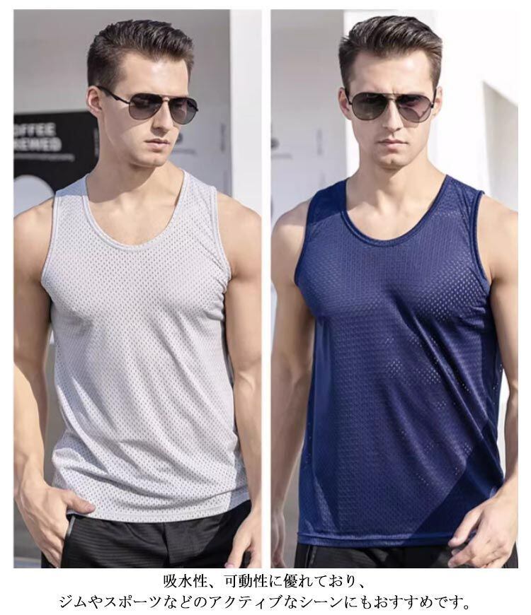 タンクトップ 筋トレ スポーツ メッシュ 3XL 薄手 タンクトップ Uネック タンク 速乾 フィット ストレッチ メンズ トレニンーグ 吸汗 接触冷感 下着 肌着 大きいサイズ L XL 2XL メ#lj8476 | オキナ商店