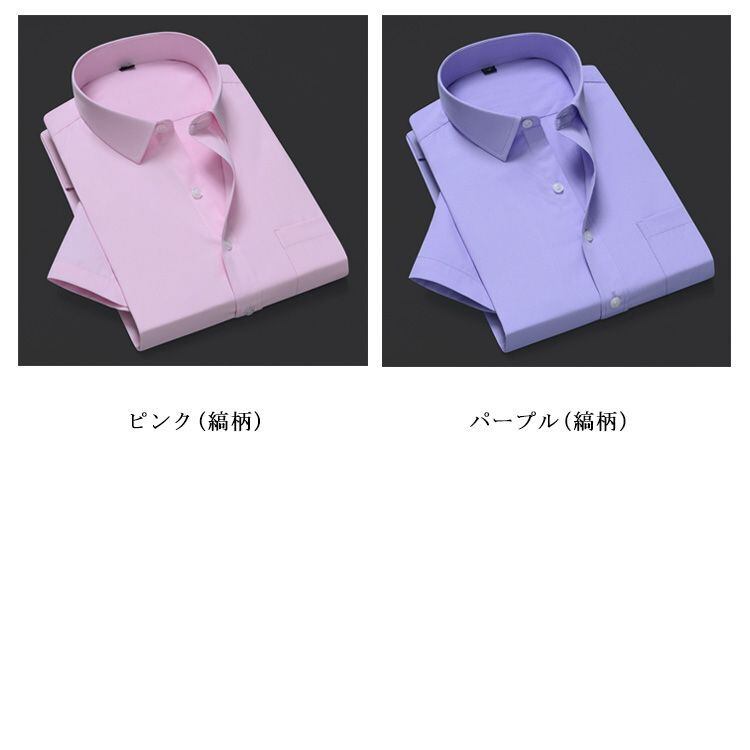 縞柄\u0026色無地の2タイプ半袖Yシャツ