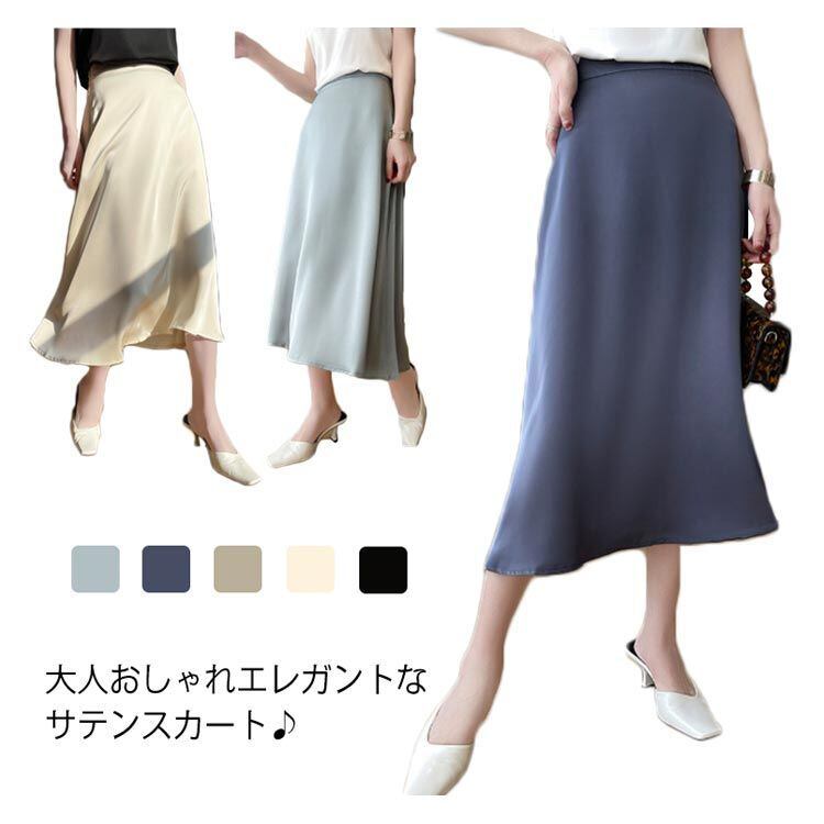 送料無料 サテンスカート レディース ボトムス スカート ロング サテン 体型カバー ミディ丈 フレアスカート aライン 微光沢 おしゃれ お出かけ 大人 かわいい 上品 大人スカート エレガント ガ#god1149 | オキナ商店