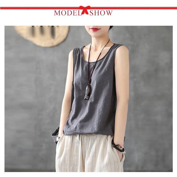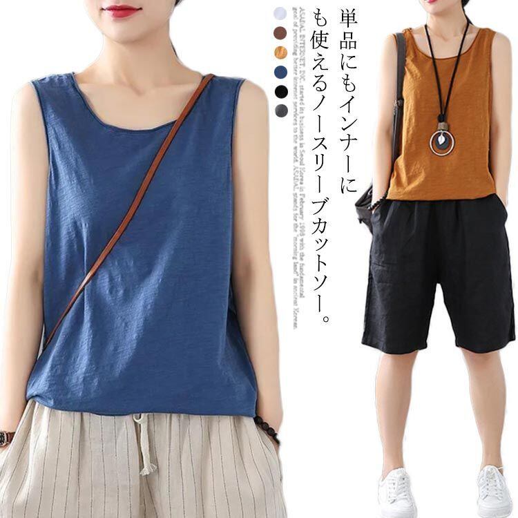 ノースリーブトップス レディース カットソー トップス タンクトップ Uネック ノースリーブtシャツ 無地tシャツ レイヤード 重ね着 ゆったり カジュアル シンプル 夏 夏服 大きサイズ 送料無料#god1136 | オキナ商店