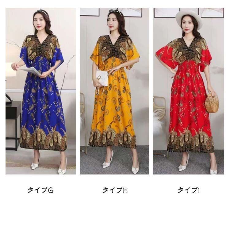 夏柄ワンピース レディース ワンピース 春夏 Vネック ペイズリー柄マキシ ボタニカル柄マキシ 洗える 体型カバー 柄ワンピ 大人 軽い ロング丈マキシ 総柄 タイル柄 ロング丈マキシワンピース リゾ#dongdong9999 | オキナ商店