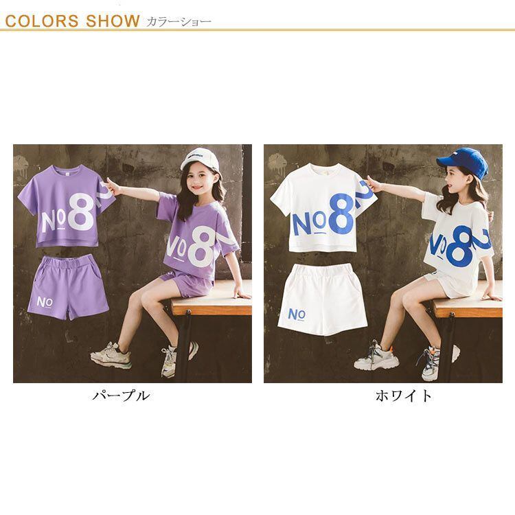 110-160cm!Tシャツ+ショーツパンツの上下2点セット♪