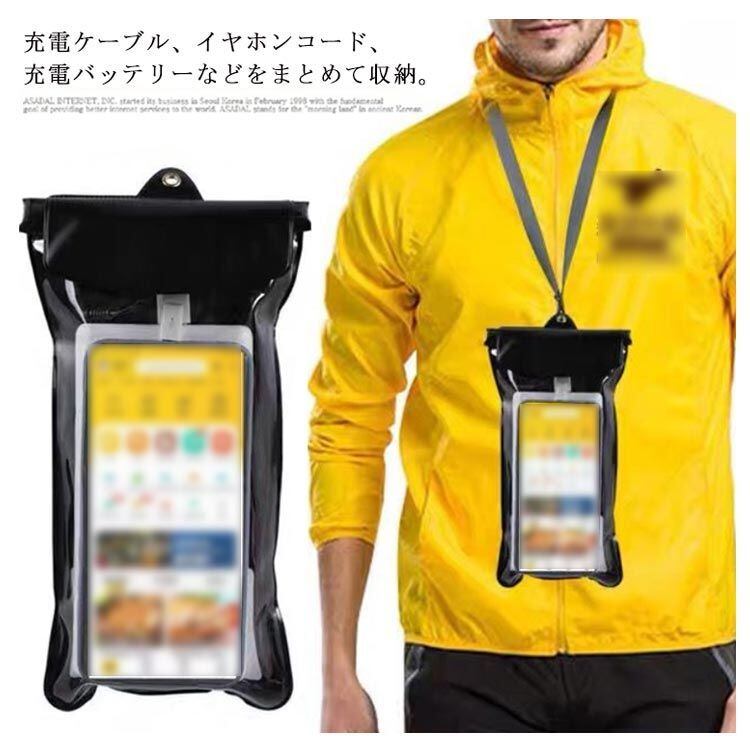 送料無料 防水ケース スマホ 携帯 防水ポーチ 大容量 バッテリー 充電ケーブル 収納 完全防水 全機種対応 ネックストラップ付き iPhone Huawei Galaxy Xperia #brs173 | オキナ商店
