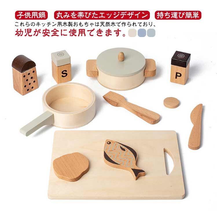 おままごと キッチンツール ままごと キッチン 木製 おもちゃ 木製のモンテッソーリのおもちゃ ミニ 食器セット 料理セット ごっこ遊び 木のおもちゃ 子供用鍋とフライパンキッチンセット#ali978 | オキナ商店