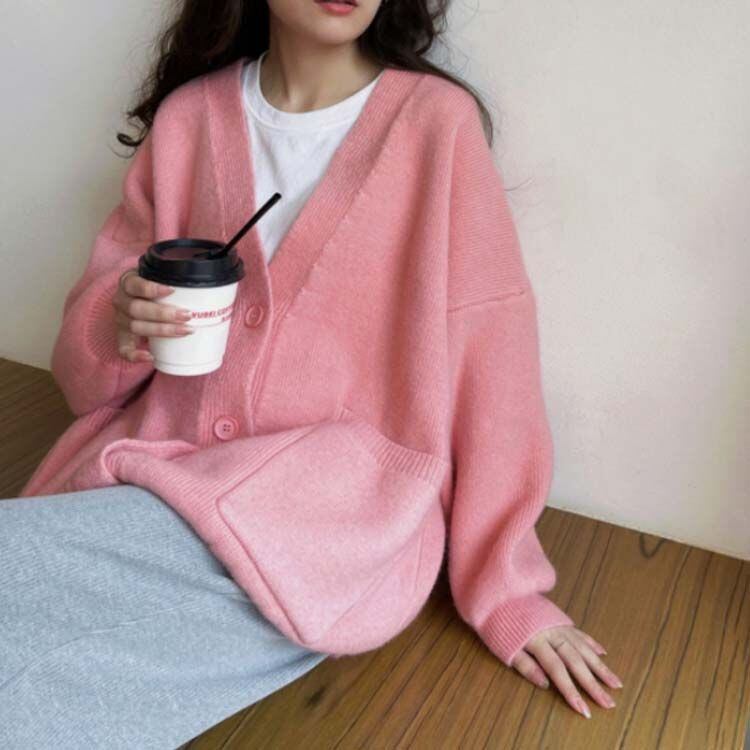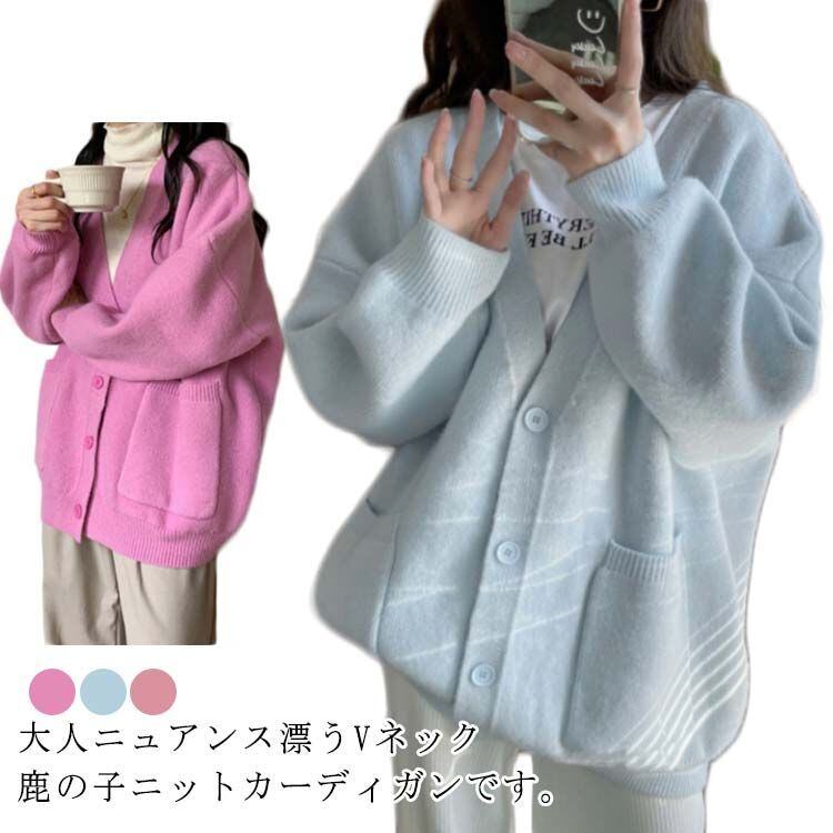 ニットカーディガン レディース カーディガン ニット トップス 長袖 コーディガン セーター 前開き 羽織り ミディアム丈 Vネック ポケット付き 体型カバー 無地 秋冬 シンプル コート カジュアル#ali863 | オキナ商店