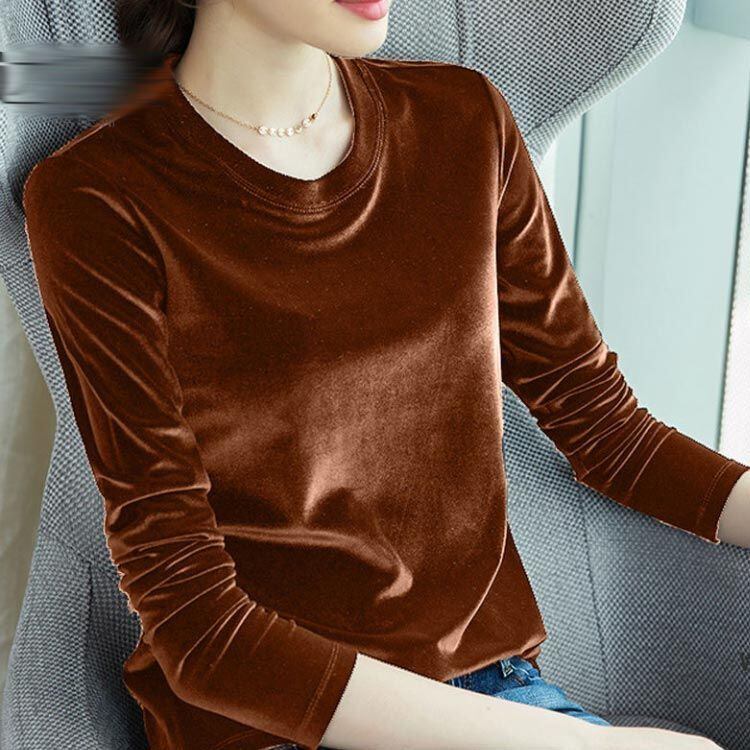 ベロア Tシャツ カットソー ベルベット レディース トップス きれいめ ストレッチ 長袖 tシャツ クルーネック スリム 大きいサイズ 大人 通勤 オフィス カジュアル シンプル 無地 春 秋 冬 #ali794 | オキナ商店