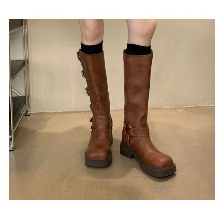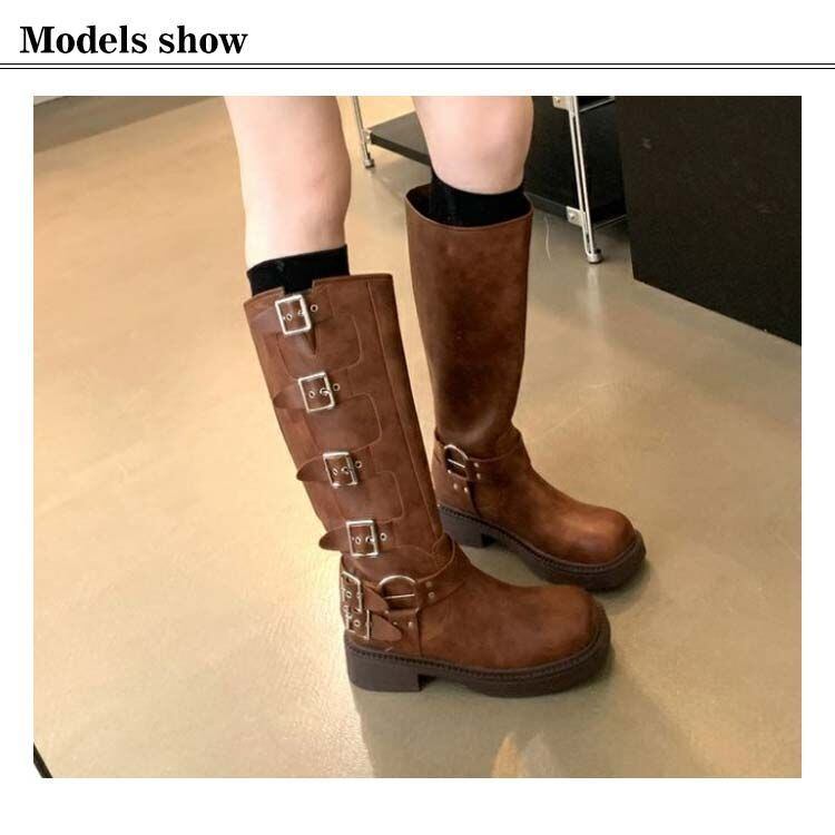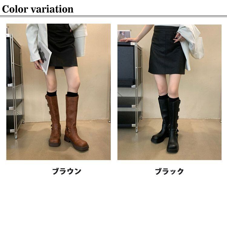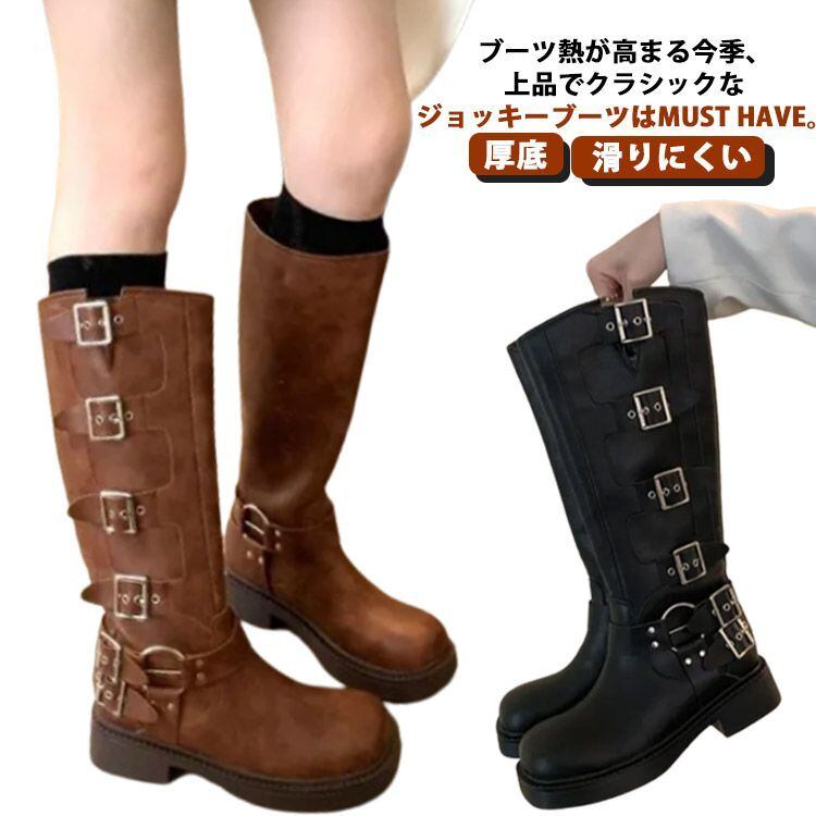 ブーツ ロングブーツ レディース ジョッキーブーツ 靴 ニーハイブーツ 太ヒール 厚底ブーツ 厚底 カジュアルブーツ 滑りにくい 歩きやすい 疲れない ゆったり 大きいサイズ 美脚 カジュアル シンプ#ali657 | オキナ商店