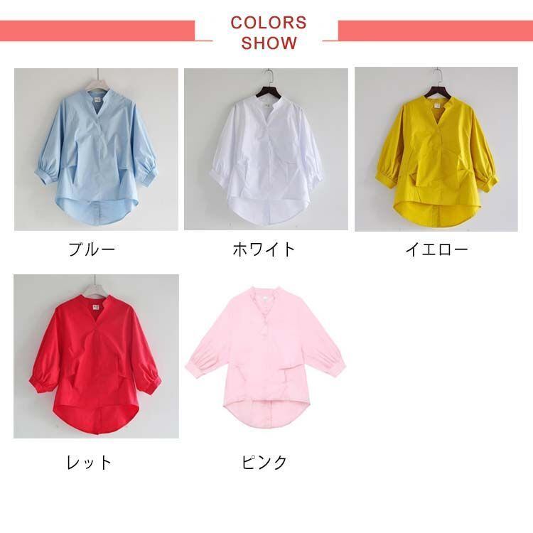 襟元をすっきり魅せて大人印象のバンドカラーに、ゆるっとシルエット&前後に着丈差をつけた裾のラインがこなれ感を発揮する。