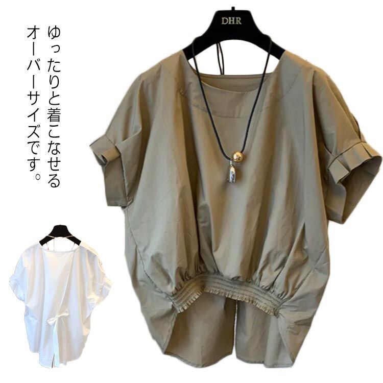 送料無料 バックリボンブラウス レディース トップス Tシャツ 春 夏 プルオーバー ラウンドネック ドルマンスリーブ 無地 シャツ 肌着 ゆったり 着痩せ カジュアル 20代 30代 40代 50代#wxn08311 | オキナ商店