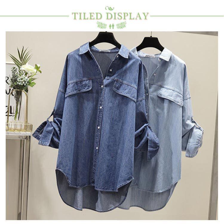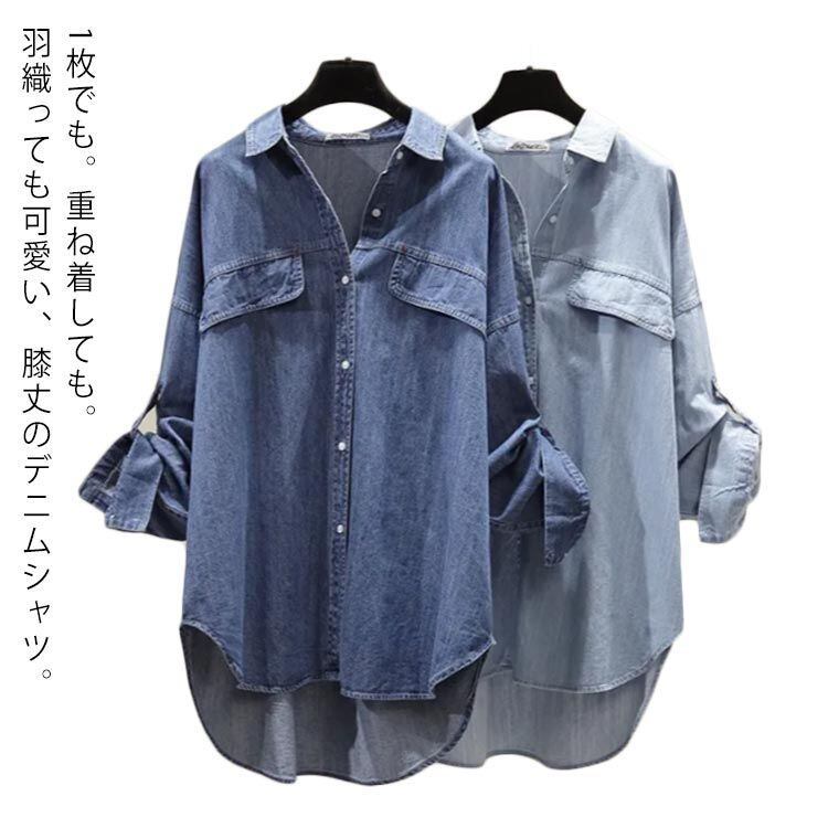 1枚でも。重ね着しても。羽織っても可愛い、膝丈のデニムシャツ。