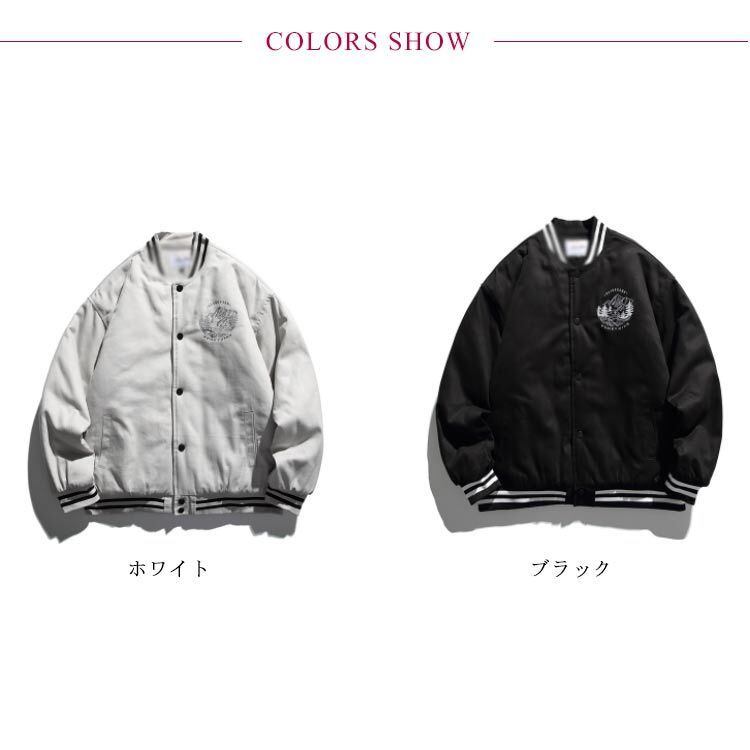 前面・背面部分デザインの刺繍で、特殊なスタジアムジャンパーに仕上がっています