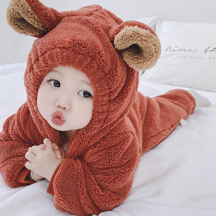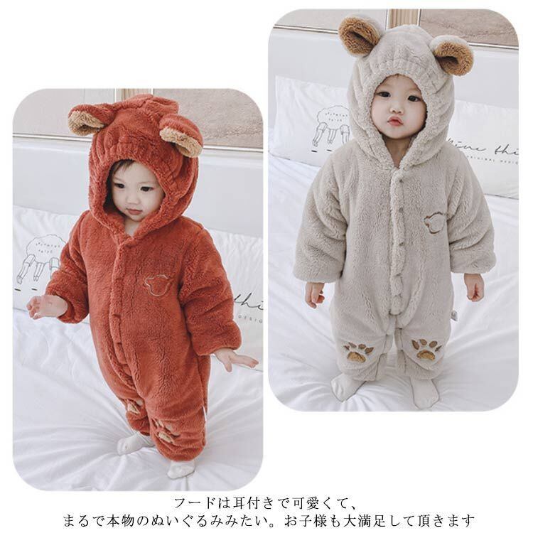 ロンパース パジャマ カバーオール 出産祝い 赤ちゃん ベビー服 防寒 ふわふわ もこもこ 動物 ルームウェア アウター 秋冬 冬用 幼児 男の子 女の子 ベビー用品 子供用 ギフト 長袖 百日祝い #mumu146 | オキナ商店