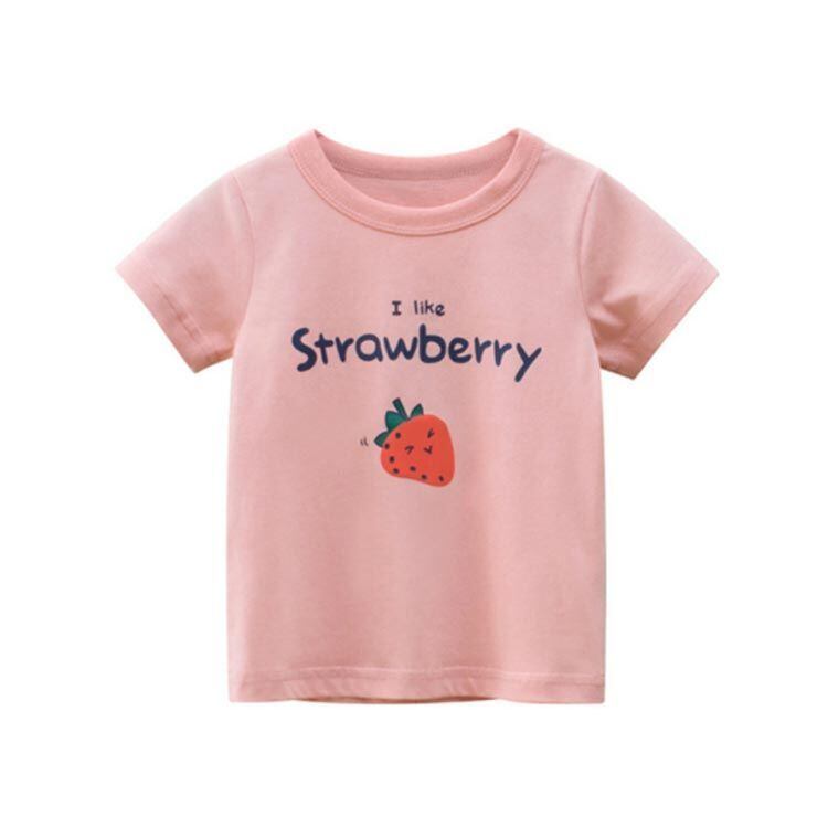 半袖 Tシャツ クールネック 女の子 Tシャツ 可愛い フルーツ柄 Tシャツ いちご メロン オレンジ Tシャツ 子供 Tシャツ 男の子 キッズ 丸首 サマーTシャツ ベビー Uネック 夏Tシャツ ト#moki1081 | オキナ商店