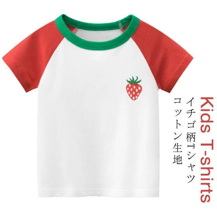 いちご 半袖 Tシャツ クールネック 女の子 Tシャツ 可愛い イチゴ柄 Tシャツ 子供 Tシャツ キッズ ベビー Uネック 丸首 サマーTシャツ 夏Tシャツ トップス インナー 半袖Tシャツ カット#moki1078 | オキナ商店