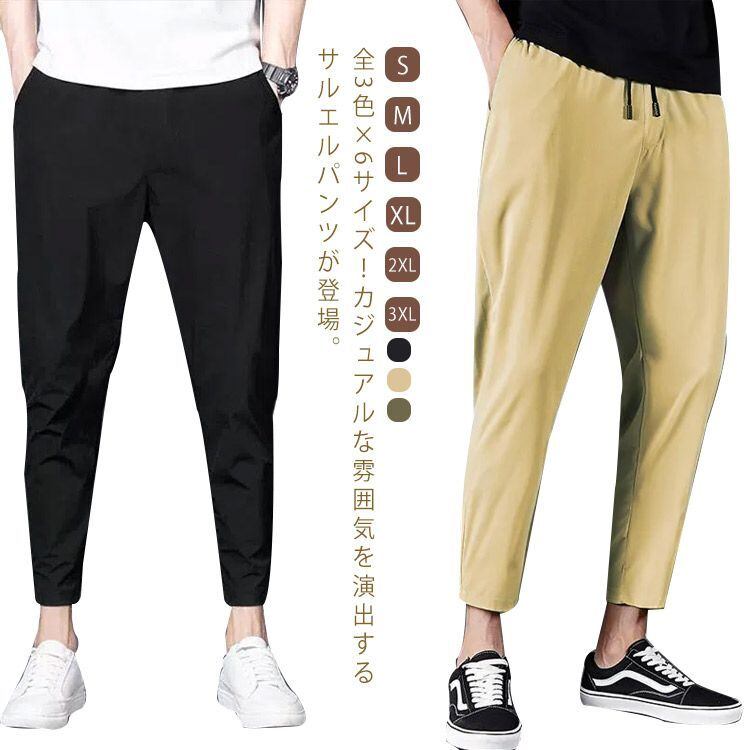 テーパードパンツ 9分丈 サルエルパンツ メンズ イージーパンツ カジュアルパンツ ゆるパンツ ウエストゴム シンプル 無地 サルエル テーパード 春夏 春 メンズファッション 大きサイズ 送料無料 #lucky1561 | オキナ商店