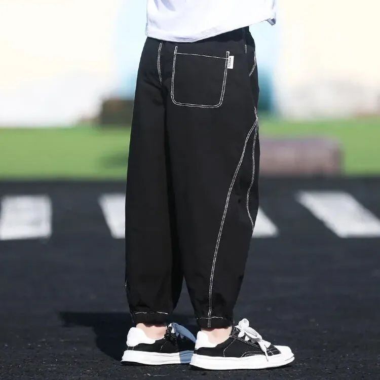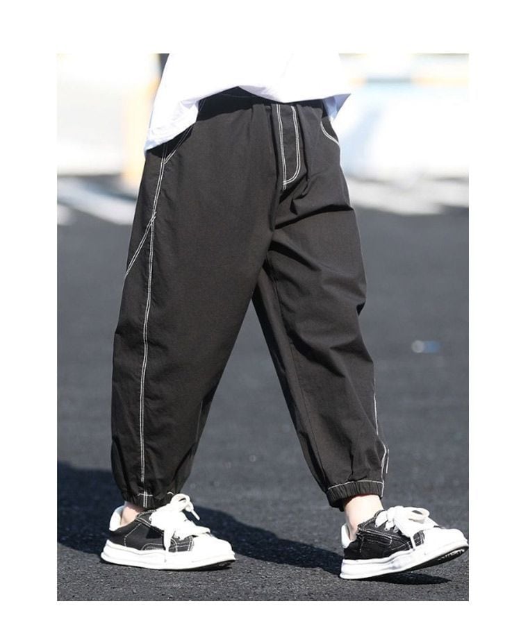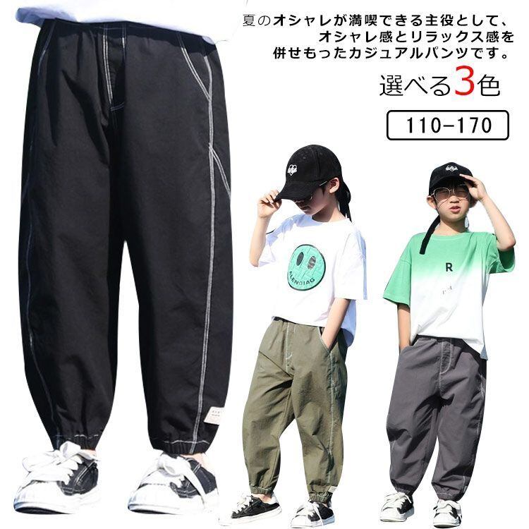 男の子 長ズボン ロングパンツ キッズ サルエルパンツ 送料無料 速乾 9分丈 夏 薄手 ゆったり ウエストゴム 裾ゴム ジュニア 通園 通学 小学生 中学生 シンプル 涼しい 110 120 130#lucky1472 | オキナ商店