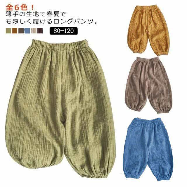 ベビーパンツ シワ感 ベビー ロングパンツ 送料無料 男の子 虫よけ 子供パンツ 長ズボン 子供服 綿 カジュアルパンツ 9分丈 夏 薄手 ゆったり ウエストゴム 裾ゴム 幼稚園 通園 通学 小学生 #lucky1471 | オキナ商店