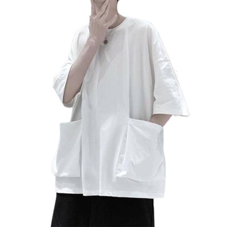 tシャツ ビッグシルエット 半袖Tシャツ 送料無料 ビッグポケット付き 5分袖Tシャツ 夏服 メンズ メンズtシャツ ビッグT 大きめポケット カジュアル トップス ラウンドネック 春夏 夏 大きサイ#lucky1442 | オキナ商店