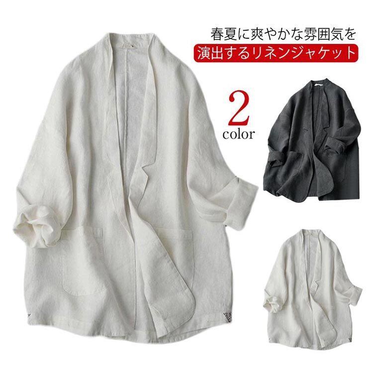 サマージャケット レディース UVカット テーラードジャケット 送料無料 ゆったり テーラード ジャケット 綿麻ジャケット ロング 長袖 リネンジャケット 麻 リネン アウター 薄手 春夏 ライトアウ#lucky1405 | オキナ商店