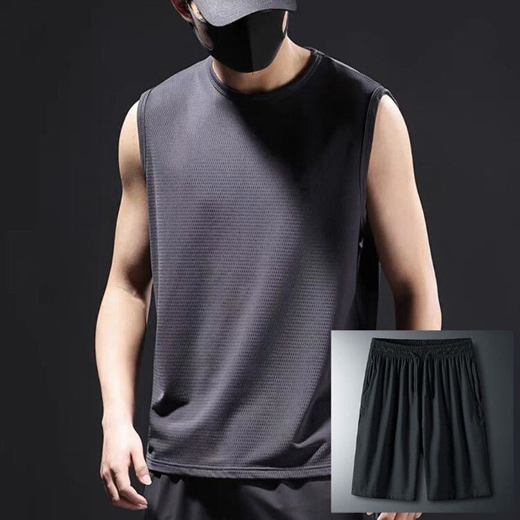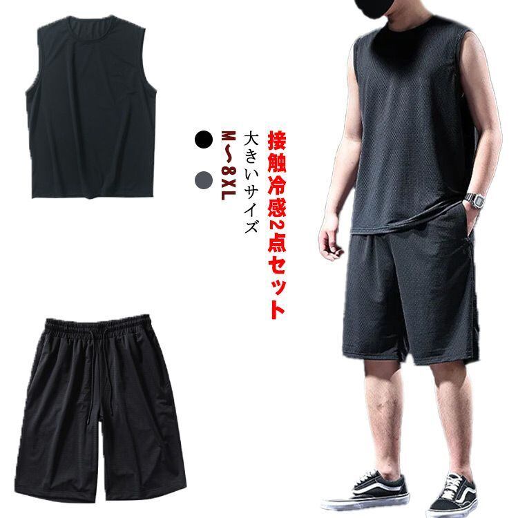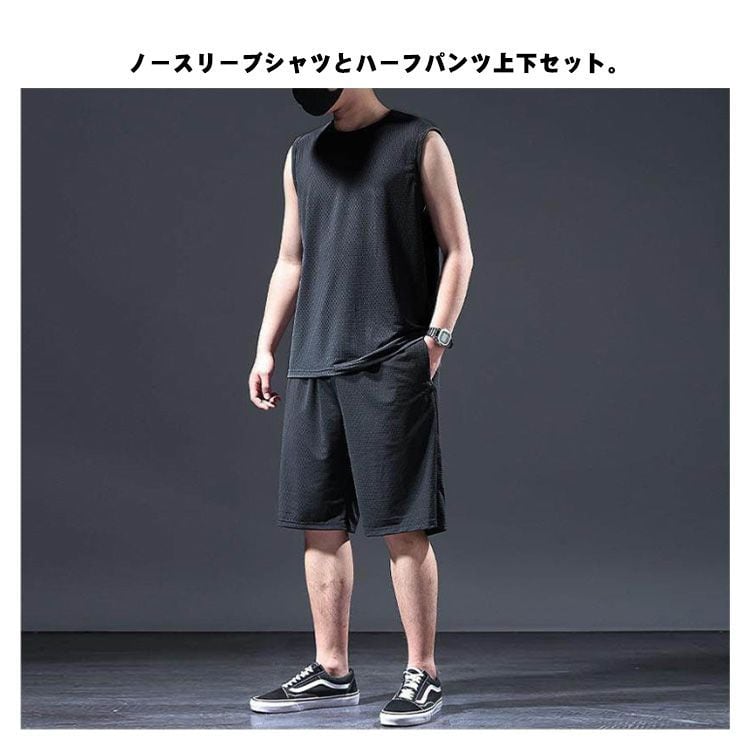ノースリーブ ハーフパンツ セット メンズ メッシュ 上下セット 接触冷感 ひんやり タンクトップ ショーツ 通気 吸汗 速乾 フィットネスウエア 大きいサイズ 送料無料#lj2325 | オキナ商店