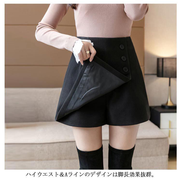 Aライン ショートパンツ 秋冬 キュロットパンツ 短パン ショーパン レディース スカート きれいめ カジュアル ハイウエスト 脚長効果 暖かい 美脚 大人 20代 30代 40代 無地 秋冬 通勤 #kmr2895 | オキナ商店