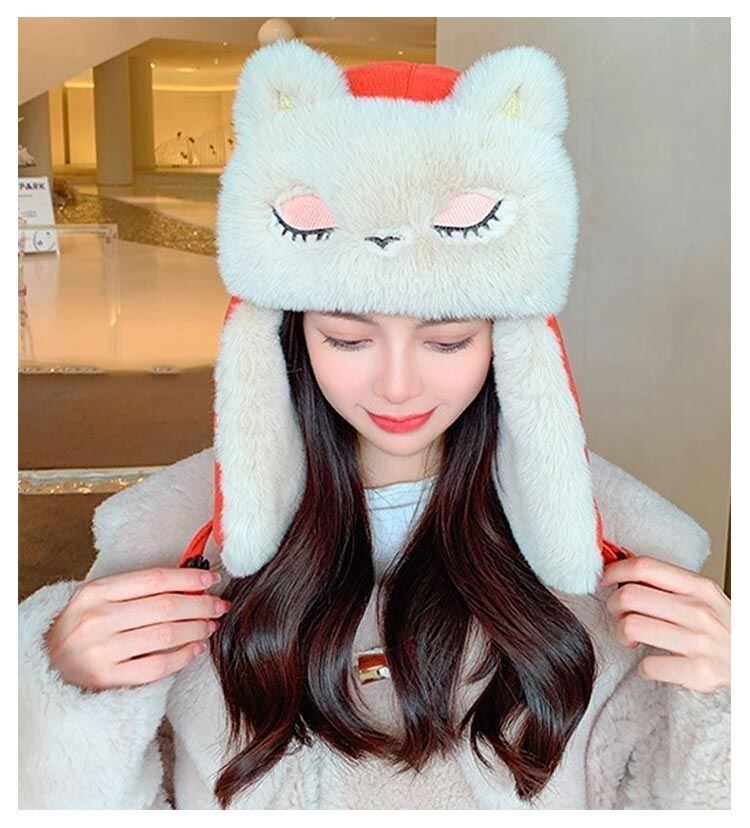 折返し耳付き帽子 耳あて付 耳当て付 帽子 メンズ レディース 帽子 かわいい 可愛い おしゃれ 耳あて 冬 秋冬 耳当て ファー 防寒 スノボ キャンプ スキー 厚手 刺繍 キャラクター ピンク ブ#goudoudou4353 | オキナ商店