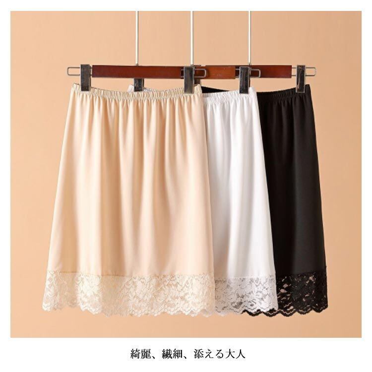 ペチコート 透け防止 ロング レース付 かわいい 50cm 70cm インナー スカート ペチ 黒 白 肌色 ブラック ホワイト 透け防止 レースペチコート インナー アンダースカート ベージュ 黒 #goudoudou4330 | オキナ商店