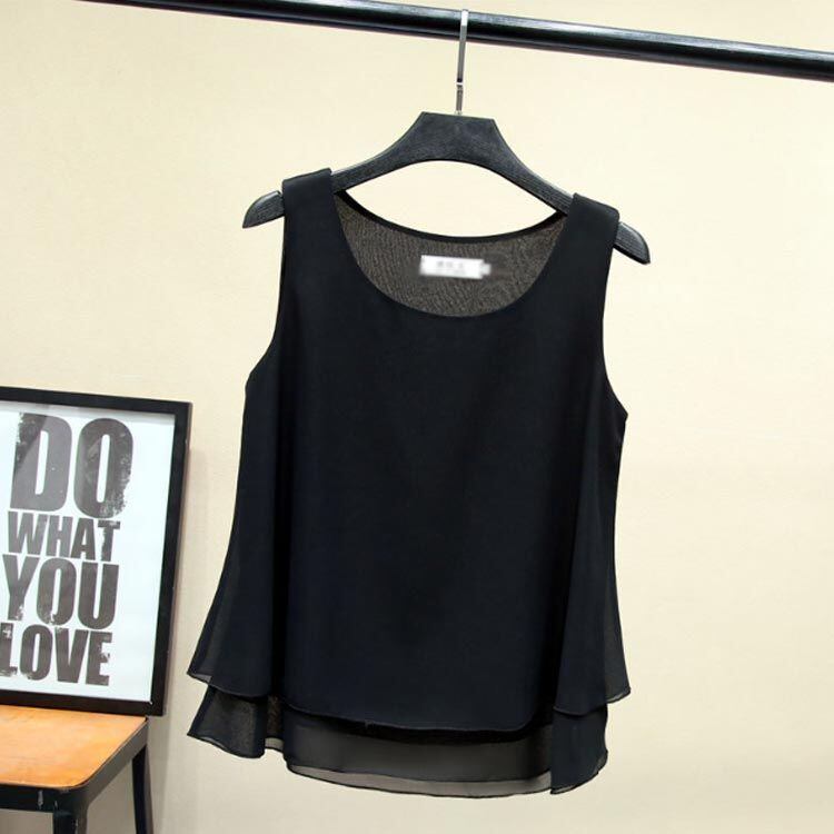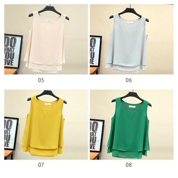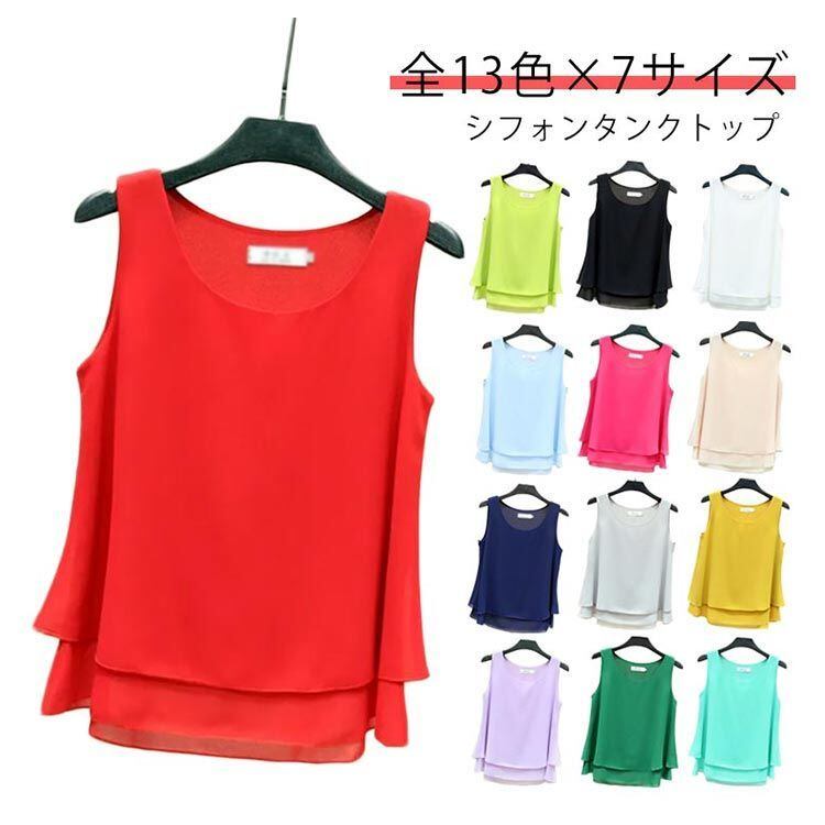 シフォン タンクトップ レディース Uネックレイヤード風 重ね着 インナー 無地 タンクトップ ノースリーブ ブブラウス シフォン トップス インナー 無地 ゆったり カジュアル シンプル かわいい #goudoudou4176 | オキナ商店