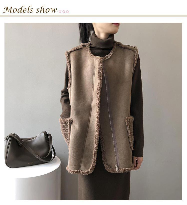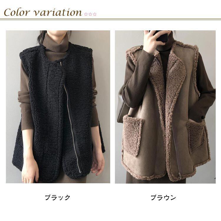 ボアベスト リバーシブル レディース ボアジャケット ノーカラー ジャケット もこもこ ふわふわ ボア ムートン アウター ブルゾン ノースリーブ オーバーサイズ 秋冬 羽織り 韓国 きれいめ あたっ#erika7230 | オキナ商店