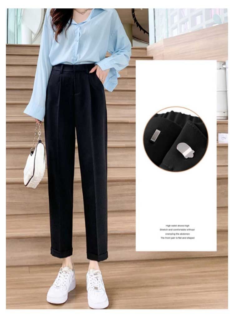 ストレートパンツ 9分丈 レディース スラックス センタープレス スーツパンツ 春 秋 冬 ボトムス ロングパンツ 長ズボン アンクル丈 バックゴムウエスト 9分丈パンツ ポケット付き ゆったり 体型#erika7187 | オキナ商店