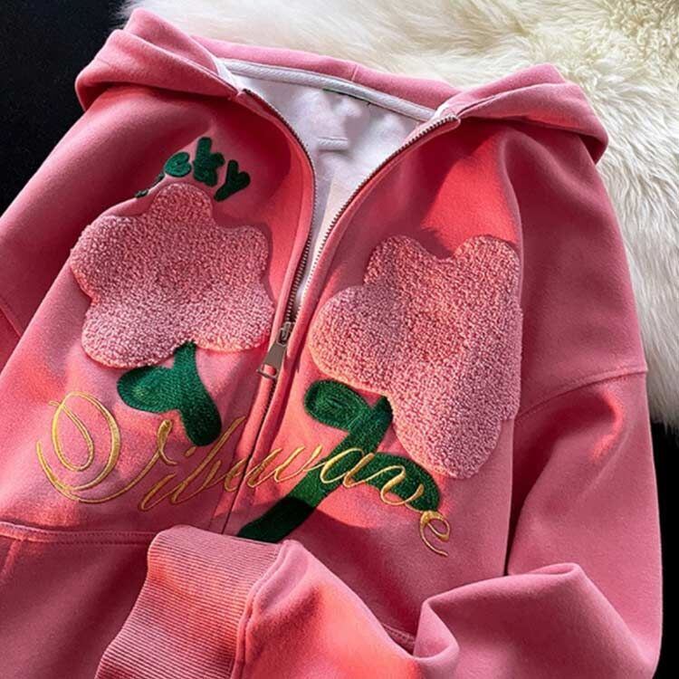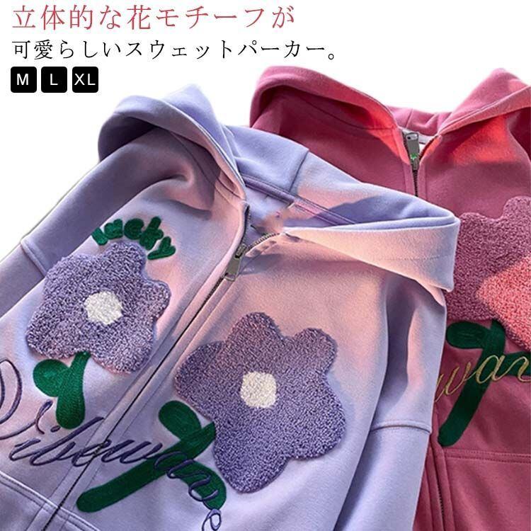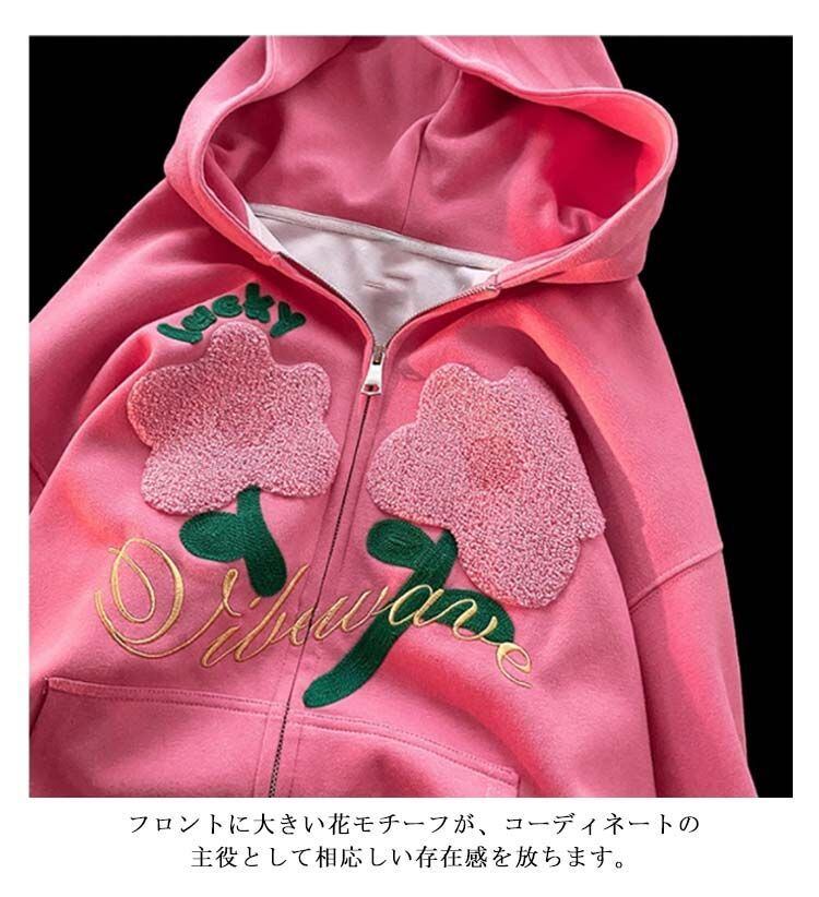 パーカー ジップアップパーカー 花柄 刺繍 レディース スウェット パーカー 花モチーフ 薄手 アウター オーバーサイズ 春 秋 ライトアウター 羽織り フード付き フーディー 秋物 秋服 学生 大人#erika7116 | オキナ商店