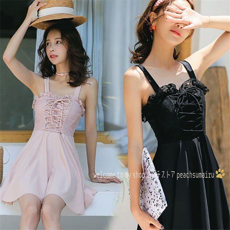 水着 レディース ワンピース水着 体型カバー 水着 無地 レース 水着 スイムウエア ビーチウェア 水泳 バックレス水着 可愛い 黒 ピンク ワンピース水着 #cupload39798 | オキナ商店