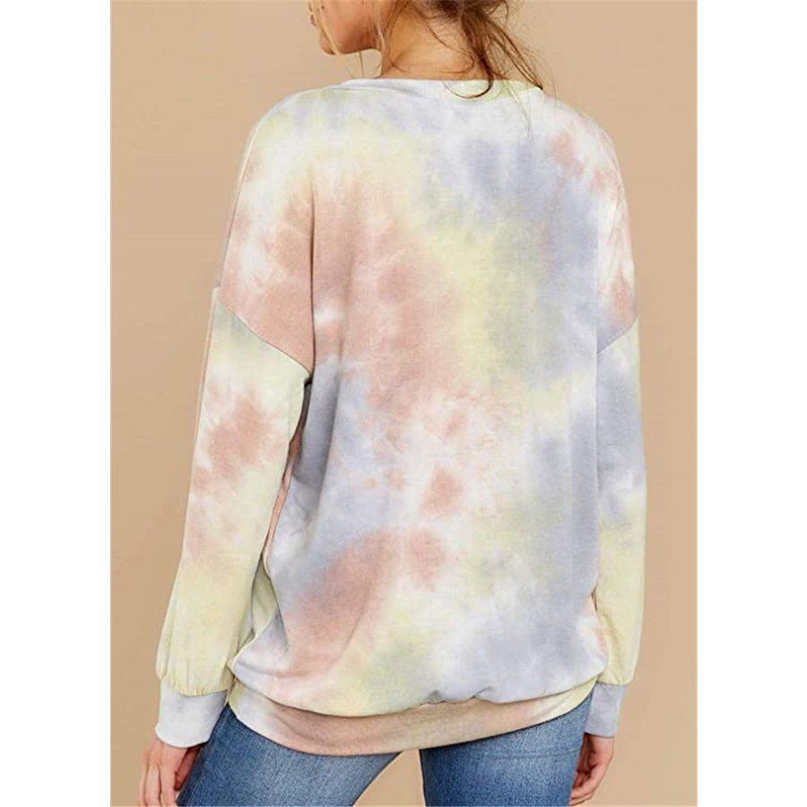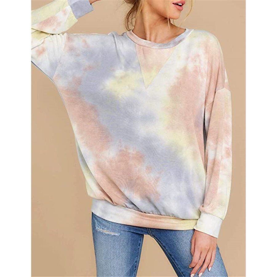 サイズについての説明:タイダイ柄がおしゃれなレディース用長袖トレーナー。