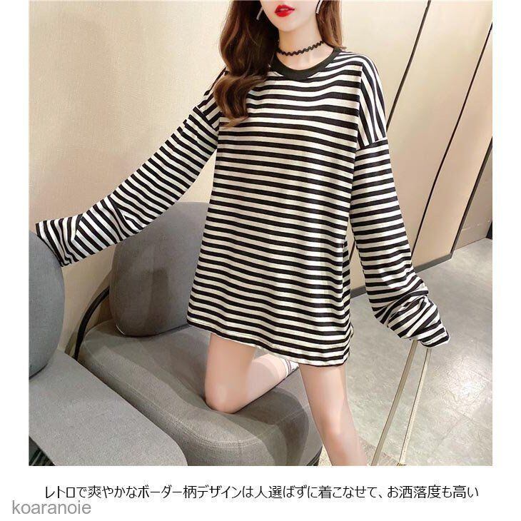 サイズについての説明:Tシャツ 長袖 レディース ボーダー柄Tシャツ ゆったり 長袖Tシャツ カットソー ボーダー柄 レインボーカラー Tシャツ 春秋 体型カバー 抜け感