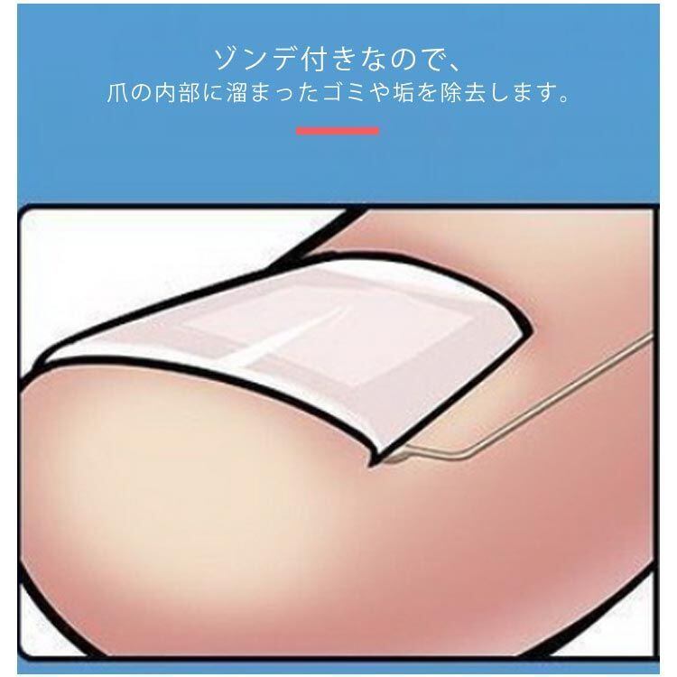 ゾンデ付きなので、爪の内部に溜まったゴミや垢を除去します。