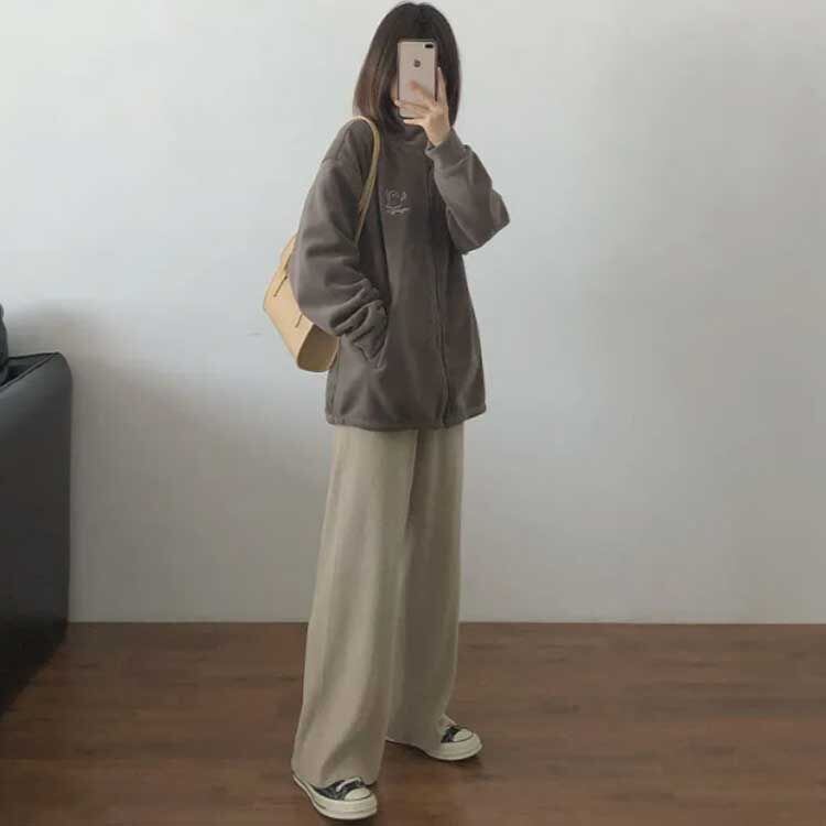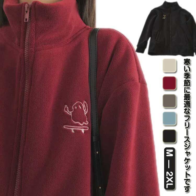 フリースジャケット レディース アウター ジップアップ ハイネック ゆったり シンプル 可愛い 大きいサイズ おしゃれ 防寒 あったか スタンドカラー ルームウェア 軽量 カジュアル スポーツ お洒落#bon1680 | オキナ商店