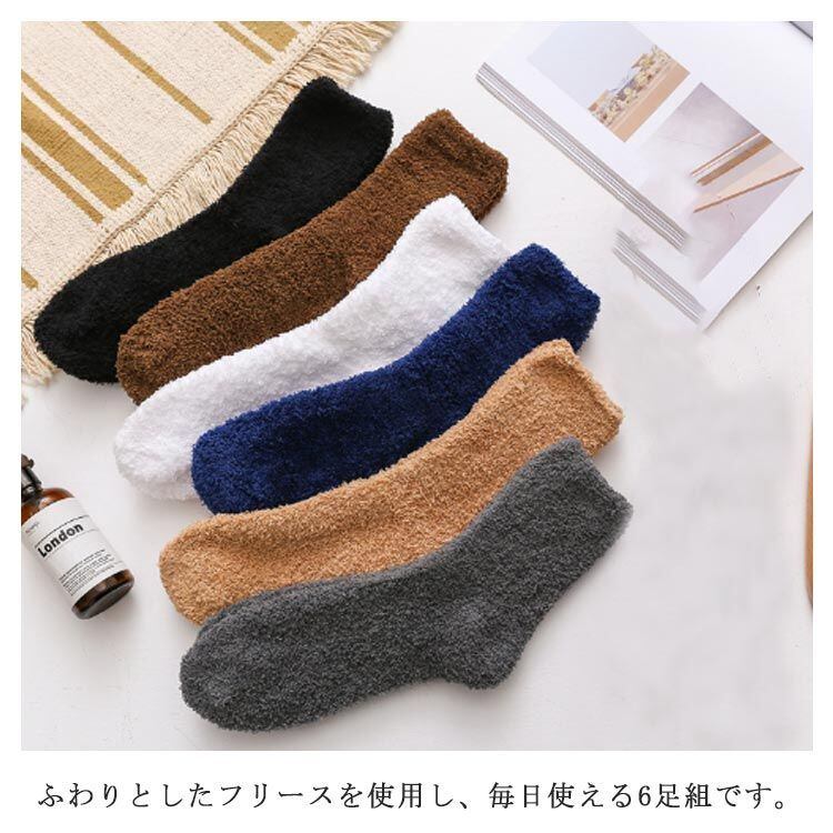 ふわりとしたフリースを使用し、毎日使える6足組です。