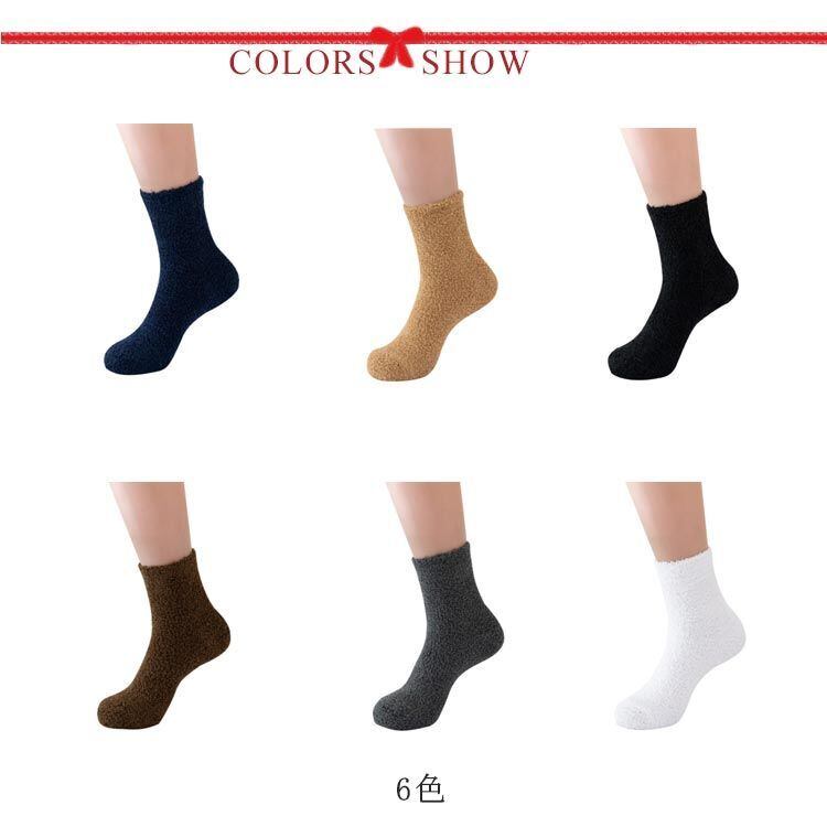 6足セット メンズ もこもこ 靴下 ルームソックス 無地 あったか靴下 レディース 男女兼用 暖かい モコモコ クルーソックス 厚手 防寒 対策 保温 厚手 秋 冬 ショートソックス くつ下 おや#xsp1455 | オキナ商店