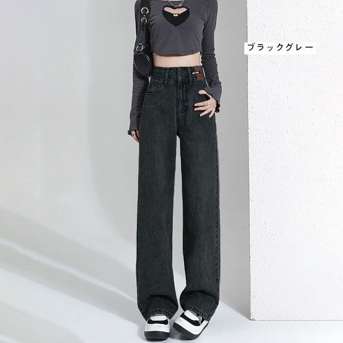 デニムパンツ レディース 即購入OK ストレート ジーンズ ワイドパンツ ズボン ボトムス ハイウエスト ロング丈 カシュアル 体型カバー 二つボタン ゆったり 美脚 脚長効果 着痩せ 送料無料 yishang03 | オキナ商店