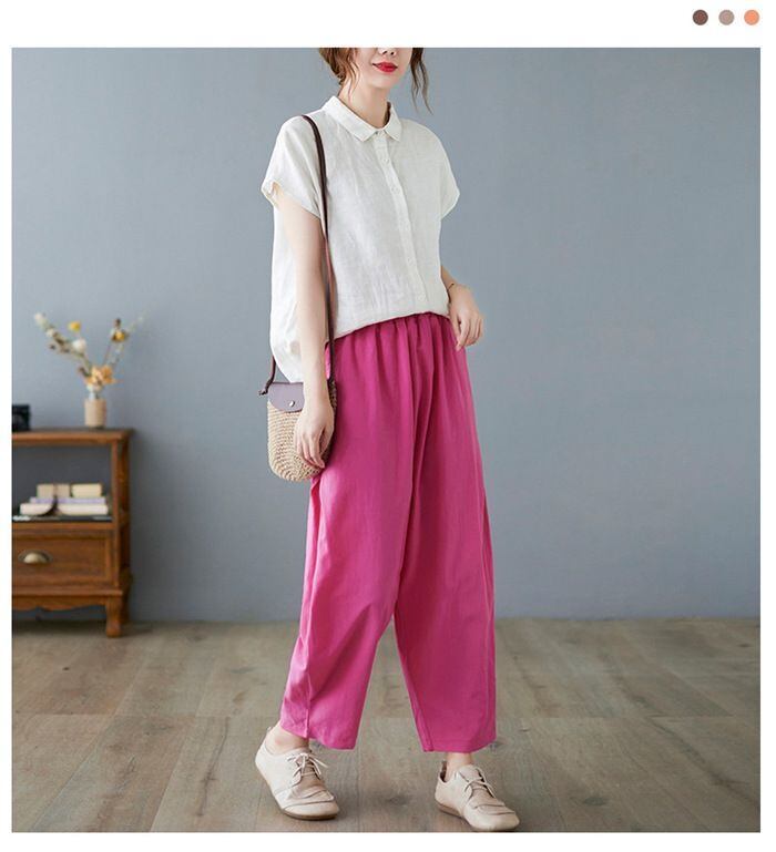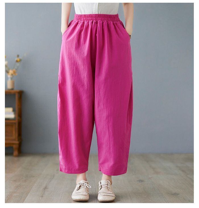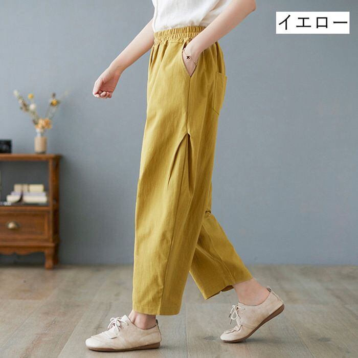 バルーンパンツ購入OK レディース ロング丈 パンツ 綿麻風 九分丈 リネン混パンツ ウエストゴム 夏 無地 カジュアル 体型カバー きれいめ 通勤 OL シンプル ゆったり おしゃれ リゾートabm108