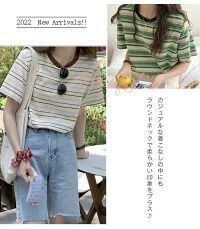 ボーダー tシャツ レディース 半袖 ゆったり 配色 カジュアル 夏 レディース クルーネック 春夏 薄手 ボーダー柄 きれいめ シャツ レディース 綿混 おしゃれ プルオーバー カットソー トップス リラックス ファッション シンプル 大きいサイズ 着痩せ 夏物 新作