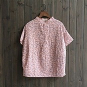 総柄 ガーゼ シャツ 夏 即購入OK レディース ガーゼシャツ 半袖 ダブルガーゼ レディースシャツ トップス 半袖シャツ ゆったり ゆる 体型カバー ガーゼ ナチュラル 小柄 総柄シャツ 花柄 ガラ バンドカラー hyxz104 | オキナ商店