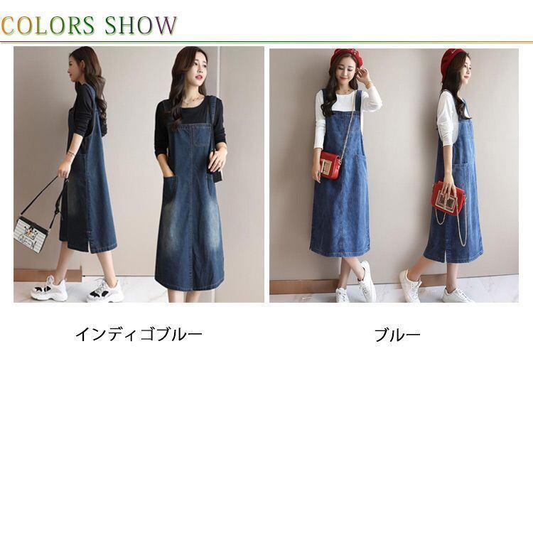 デニムワンピース 即購入OK ジャンパースカート デニム サロペット レディース オールインワン デニムスカート ミモレ丈 膝丈 春 夏 秋 冬 大きいサイズ オーバーオール aライン スリット yunban140 | オキナ商店