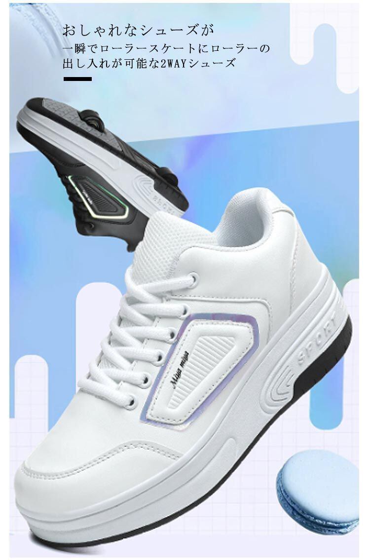 キッズ 即購入OK ローラースケート 2way ローラースニーカー 2輪 ローラーシューズ 靴 前輪取り外し可能 大人 子供 女の子 男の子 スニーカー 通気性 新年 子供 大人 ローラーシューズ 後輪ワンボタ zhangban195 | オキナ商店