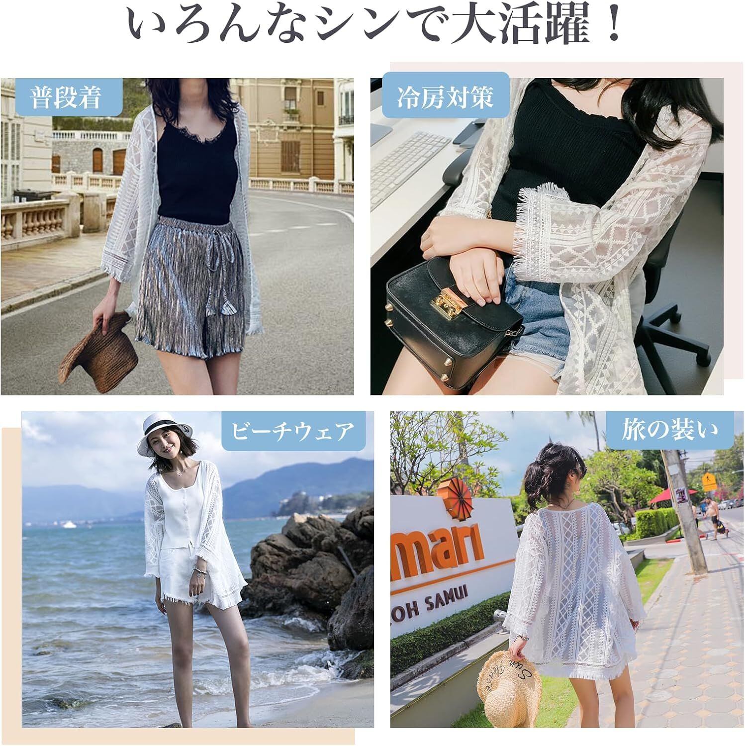 カーディガン 即購入OK レディース 羽織 シフォン ブラウス 水着 体型カバー 前開き 薄手 ボヘミアン ビーチウェア ビキニカバー レース 紫外線対策 冷房対策 透け感 おしゃれ zhangban219 | オキナ商店