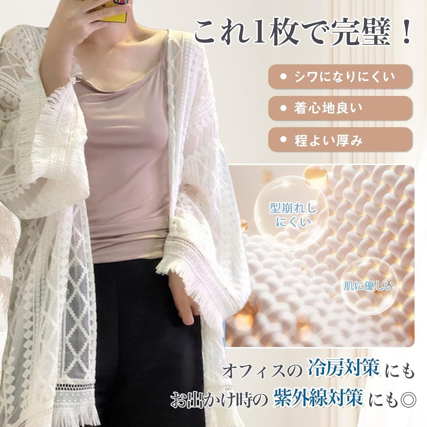 【品 番】zhangban219 【万能の羽織りカーディガン】海やプールで、テンションが上がるビーチロングカーディガンが登場いたしました!ワンピースやドレスとの相性が抜群のロング丈タイプのボレロです。合わせやすいカラーとデザインが魅力のお品でございます。お部屋着としても、通勤時にも、旅行先でも、この一枚はどんな場面にもぴったりお似合いです。春や夏、初秋という季節には、厚みがちょうどよく、欠かせないエレガントでおしゃれなアイテムとなっております。 【お洒落に着られる体型カバー】細部にまでこだわった体型カバーは、爽やかなレースで涼し気な夏スタイルを演出し、エレガントな印象をプラスいたします:七分袖のひらひらは二の腕のカバー力もアップします!透け感のあるレースで程よい肌見せが叶い、露出が気になる方にもおすすめです。繊細に編み上げられたレースが可愛らしく、特にオリジナルに編み上げたトップスはふんわりとフェミニンな印象を与えます。 【紫外線対策】7分袖のデザインで、肌をカバーでき、日焼けを防ぎます!ゆったりめに作られた絶妙なサイズ感が特徴です!外出先で急に風が吹いて少し肌寒くなったり、エアコンの強い店内に入ったりしても、この一枚でちょうど良い保温感を得られます。紫外線対策だけでなく、場面に応じて使い方が広がるのも魅力的な点でございます! 【薄型通気性】美しいデザインと柔らかなシフォン素材で仕上げられたカーディガンです。軽やかな着心地と上品なシルエットが、日常のコーディネートをより華やかに演出いたします。カジュアルからフォーマルまで幅広いシーンで活躍する一枚となっております。 【いろいろなシーンで大活躍!】結婚式や二次会、パーティー、発表会、ビーチ、プール、リゾートや海のほか温泉施設、普段のワンピースの羽織りなど、あらゆる場面でマルチにご活用いただけます。 今ならショップをフォロー&お気に入り登録で限定クーポンGET! 1980円以上→100円OFF 2980円以上→200円OFF 3980円以上→300円OFF (日曜日・祝日は発送対応しておりません。)