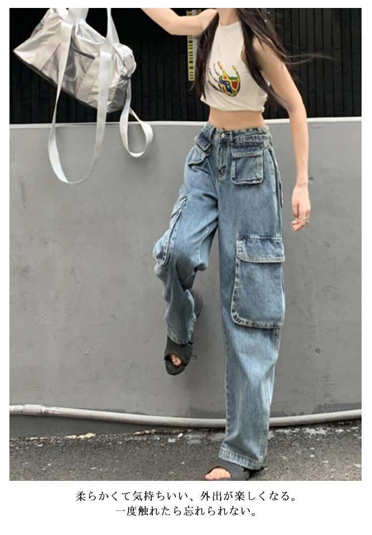 デニム カーゴパンツ 未使用 ロングパンツ ジーンズ レディース ワイドパンツ ストレート カジュアル ストリート 体型カバー お出掛け 通勤 普段着 秋冬 大きいサイズ 作業着 きれいめ ゆったり yunban122 | オキナ商店