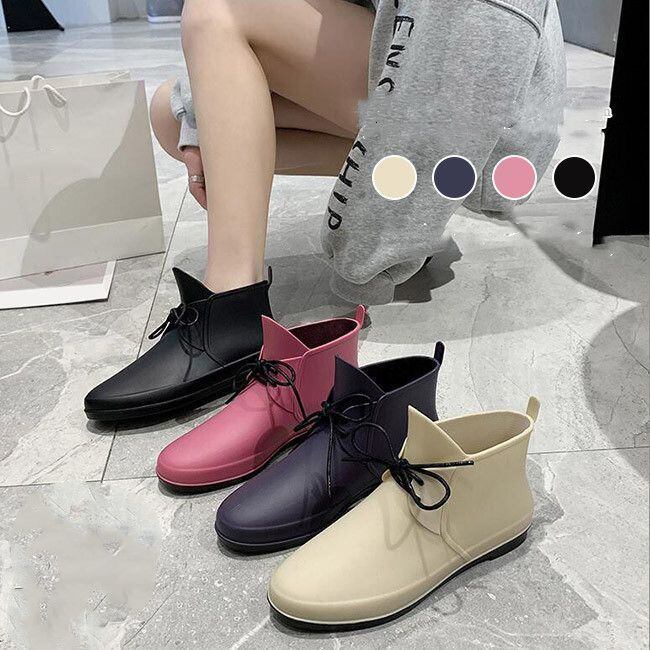 レディース 即購入OK レインブーツ ショート スニーカー レースアップ レインシューズ ラバーシューズ 編み上げ 長靴 雨靴 防水 梅雨 カジュアル おしゃれ zhangban205 | オキナ商店